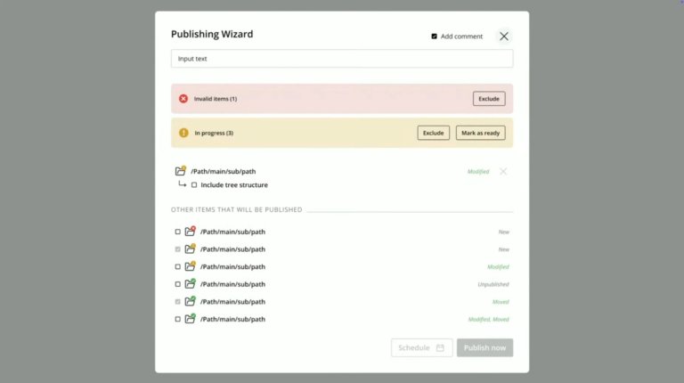 Publisering er en av de mest kritiske funksjonene. Den nye veiviseren skiller tydeligere mellom hva som er endret og hva som allerede ligger ute. Det blir også enklere å legge til kommentarer og inkludere underliggende innhold (children) i publiseringsløpet.